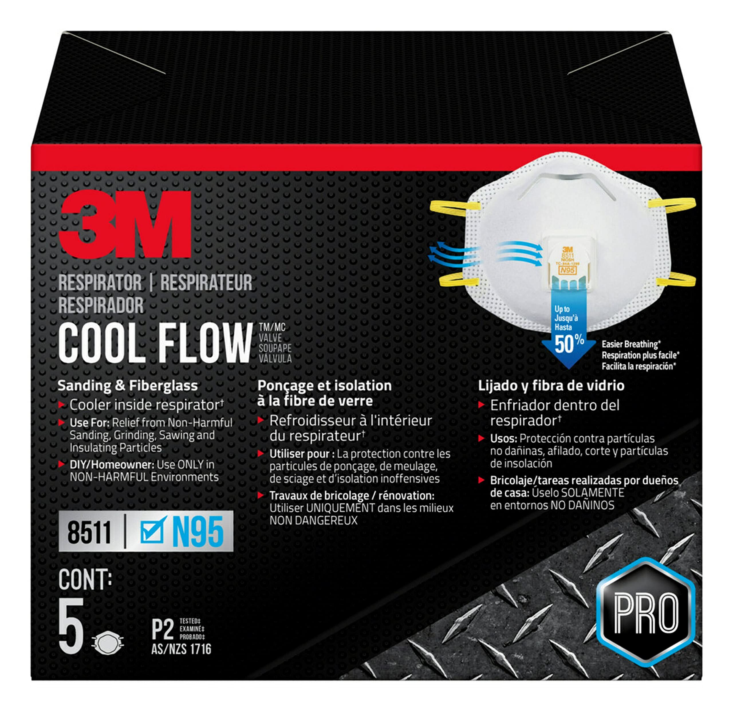 3m 8511 Sanding and Fiberglass N95 Cool Flow Valved Respirator, Niosh-approved, Relief From Dusts and Certain Particles During Sanding, Pollen, Mold Spores, Dust Particles, 5-pack