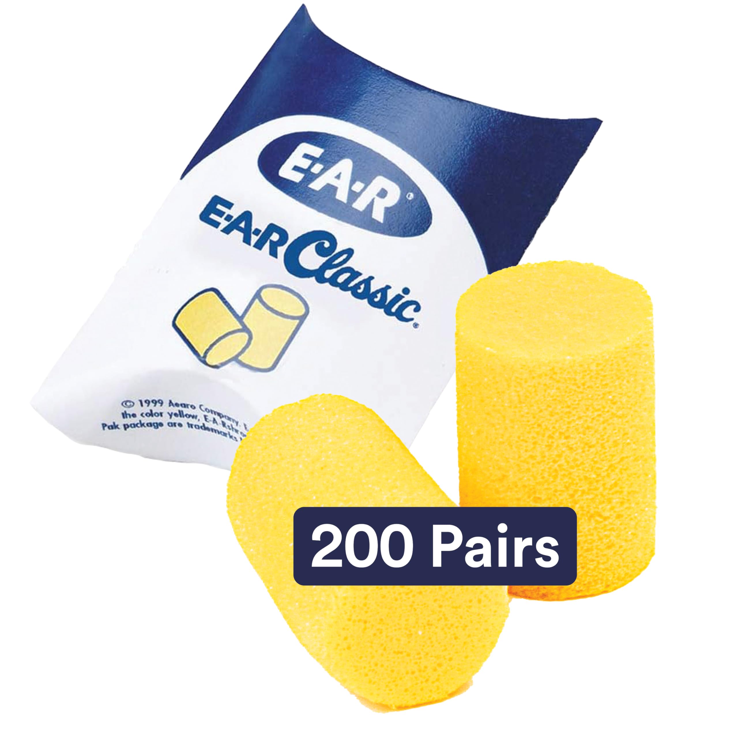 3M Ear Plugs, 200 Pairs/Box, E-A-R Classic 310-1001, Uncorded, Disposable, Foam, NRR 29, For Drilling, Grinding, Machining, Sawing, Sanding, Welding, 1 Pair/Pillow Pack