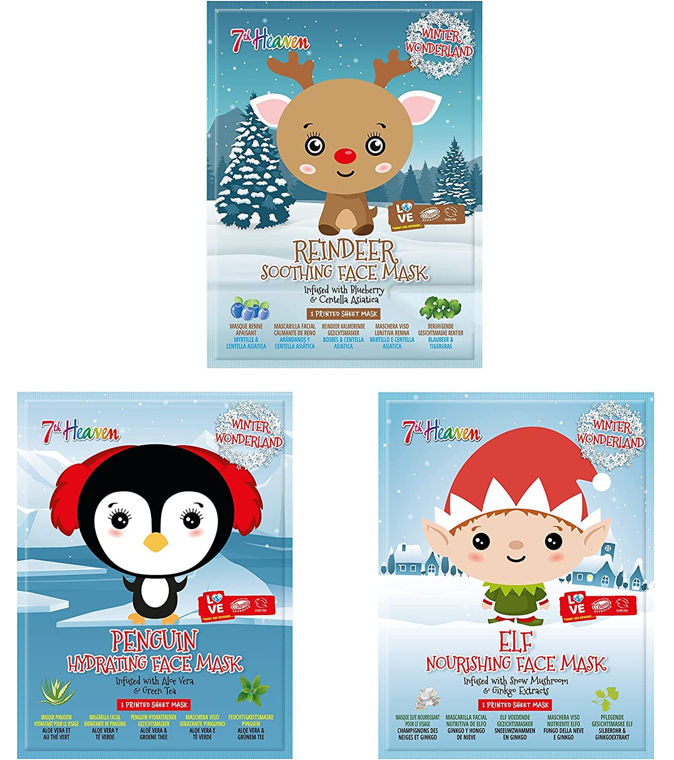 7th Heaven Christmas Peel-Off Masks for Kids – Hydrates and Moisturizes Skin – Fun for Kids Birthday Parties and Rainy Days – 3 Pack Bundle (Reindeer, Penguin, and Elf)