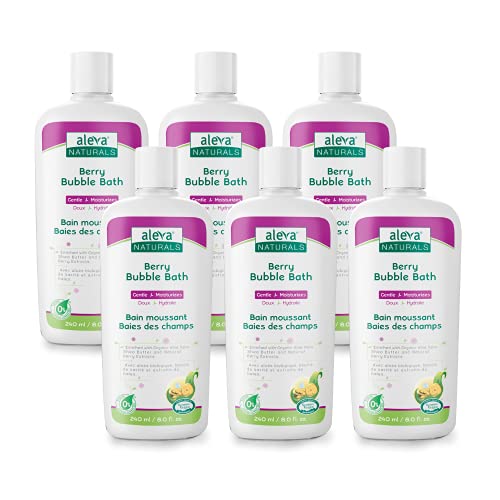 Aleva Naturals Bubble Bath - Long Lasting Moisture for Sensitive Skin, Made with Natural and Organic Ingredients, Fresh Berry Scent, 8 Fl Oz x 6 (1.440L), Clear