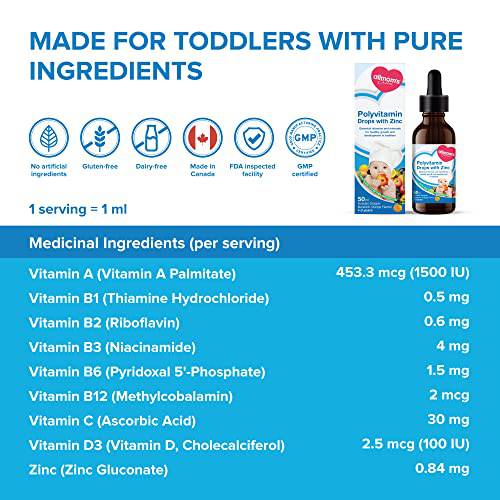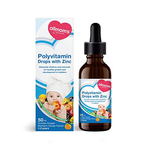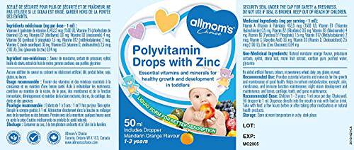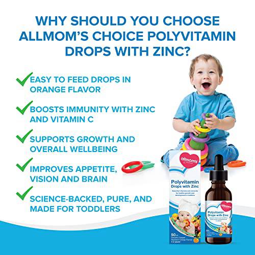 Allmoms - Polyvitamin Drops with Zinc, 50ml - 9 Essential Vitamins and Minerals for Healthy Growth and Development in Toddlers - Immunity Boost, Appetite, Vision Care and Brain Health - 1 to 3 Years