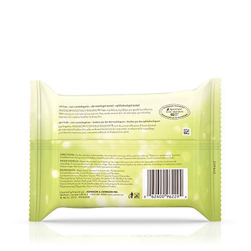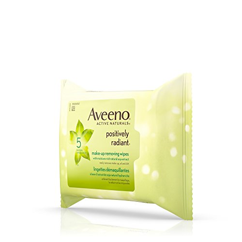 Aveeno Make Up Removing Wipes, Positively Radiant Facial Cleansing Wipes With Soy Extract, 25 Count