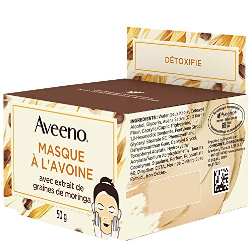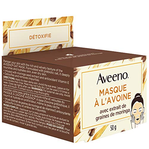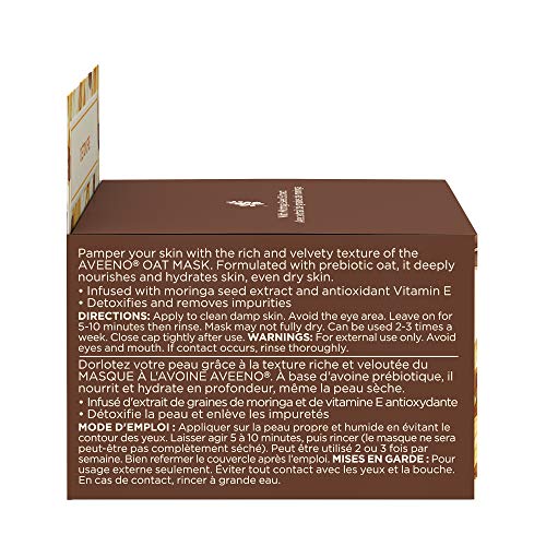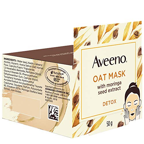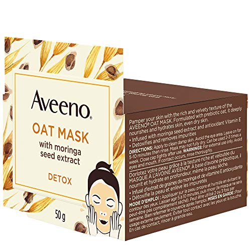 Aveeno Oat Face Mask with Moringa Seed Extract for Detox - Dry Skin Care - Paraben Free Facial Cleanser - 50 grams