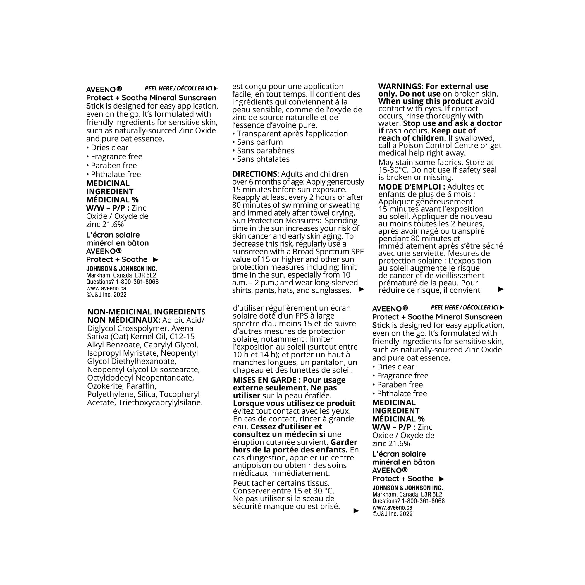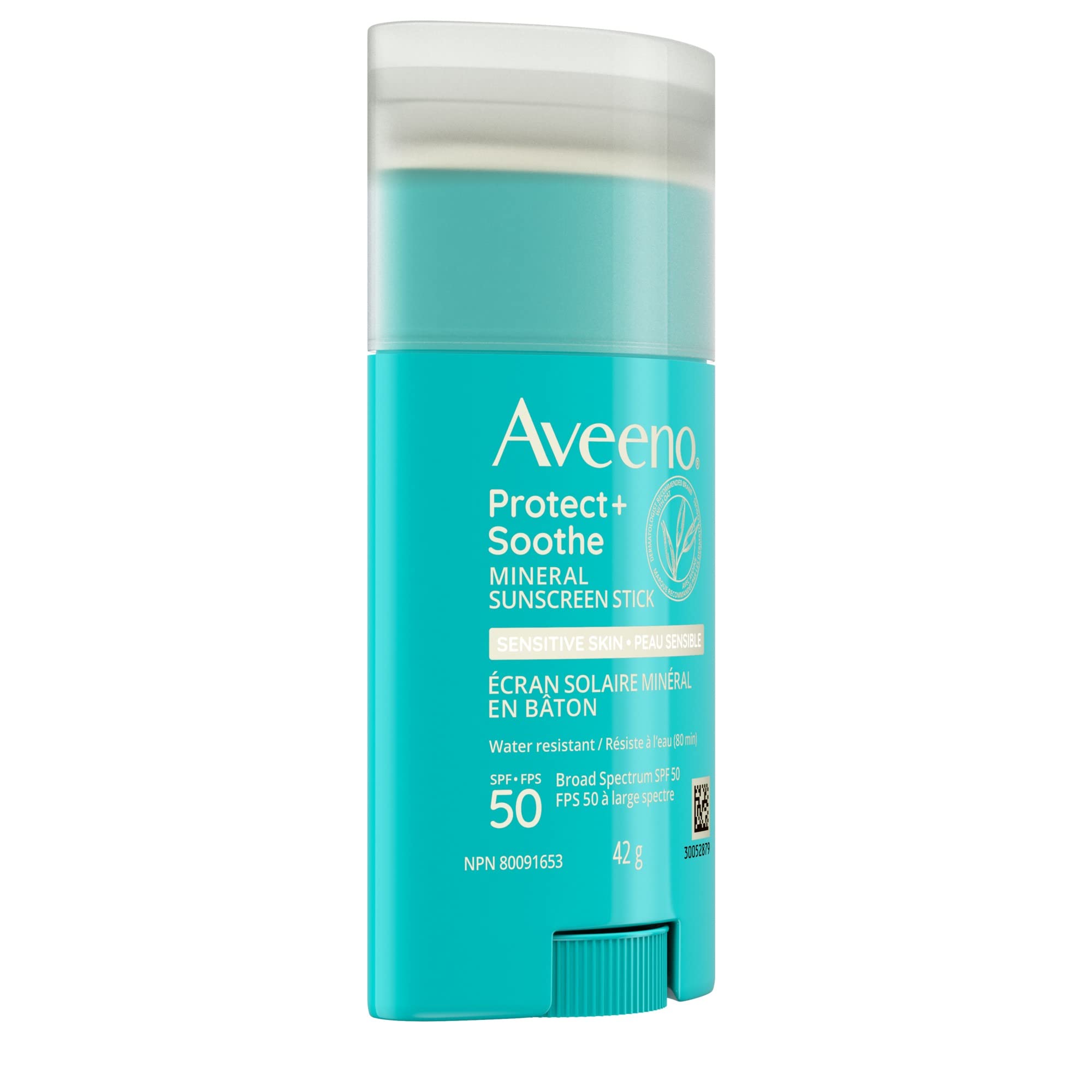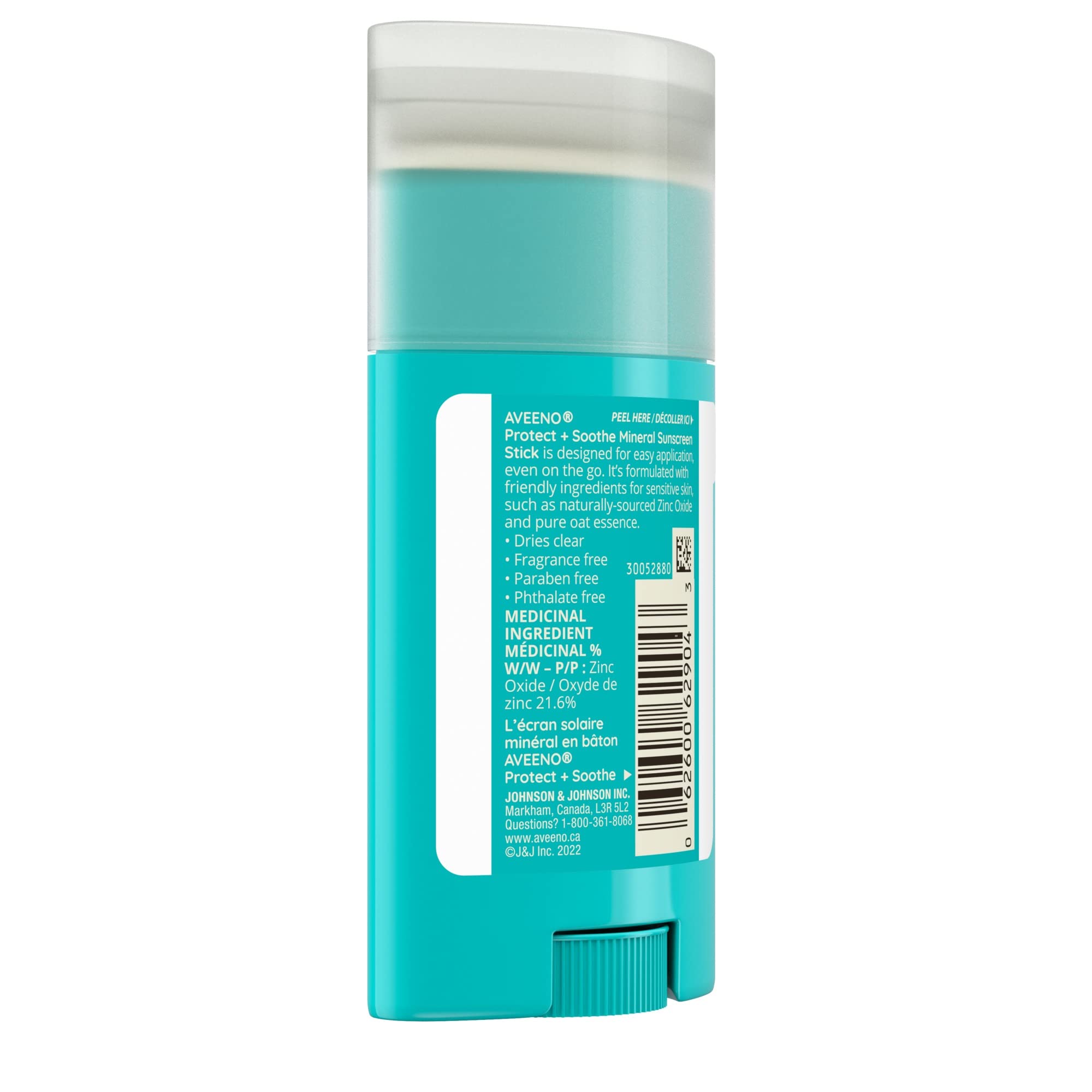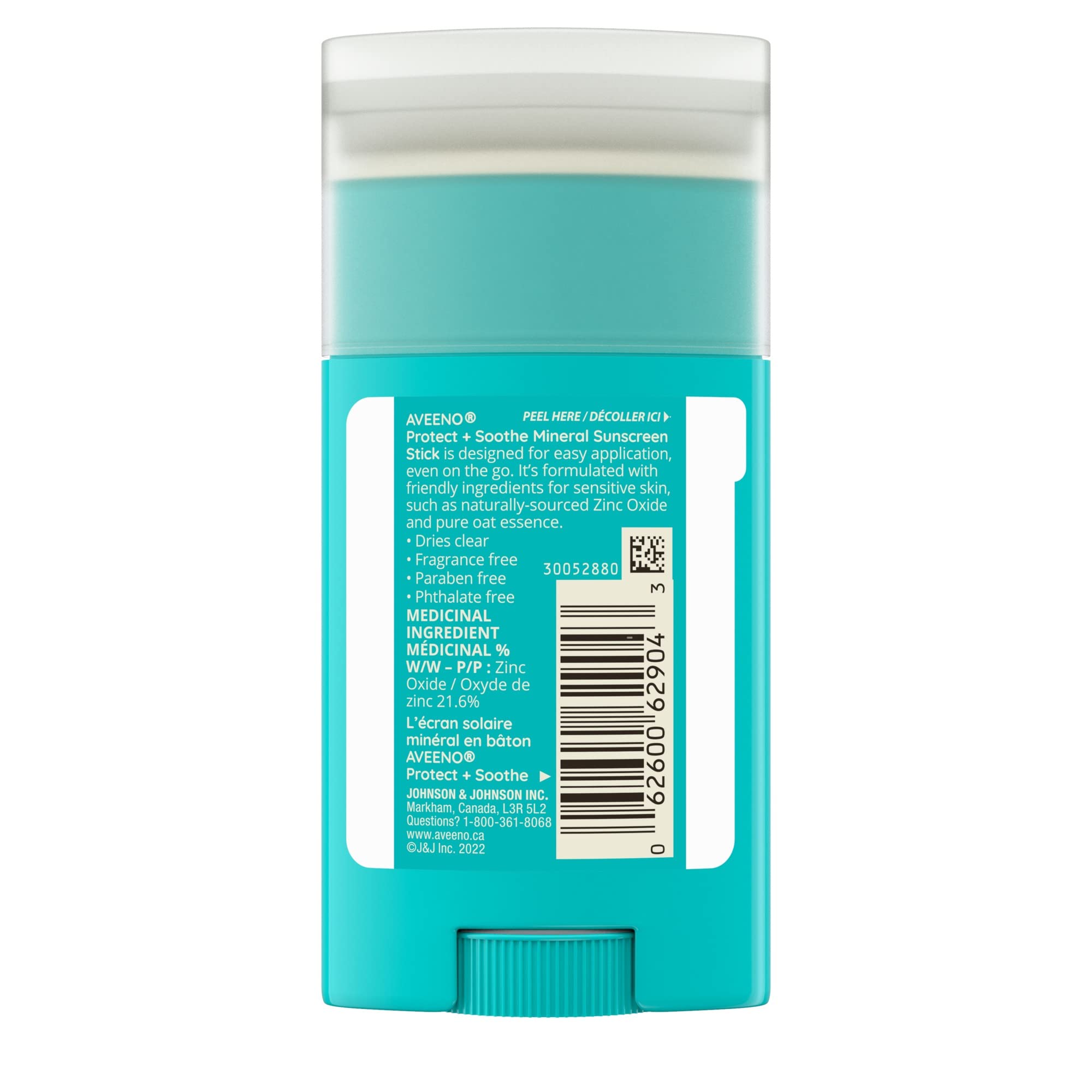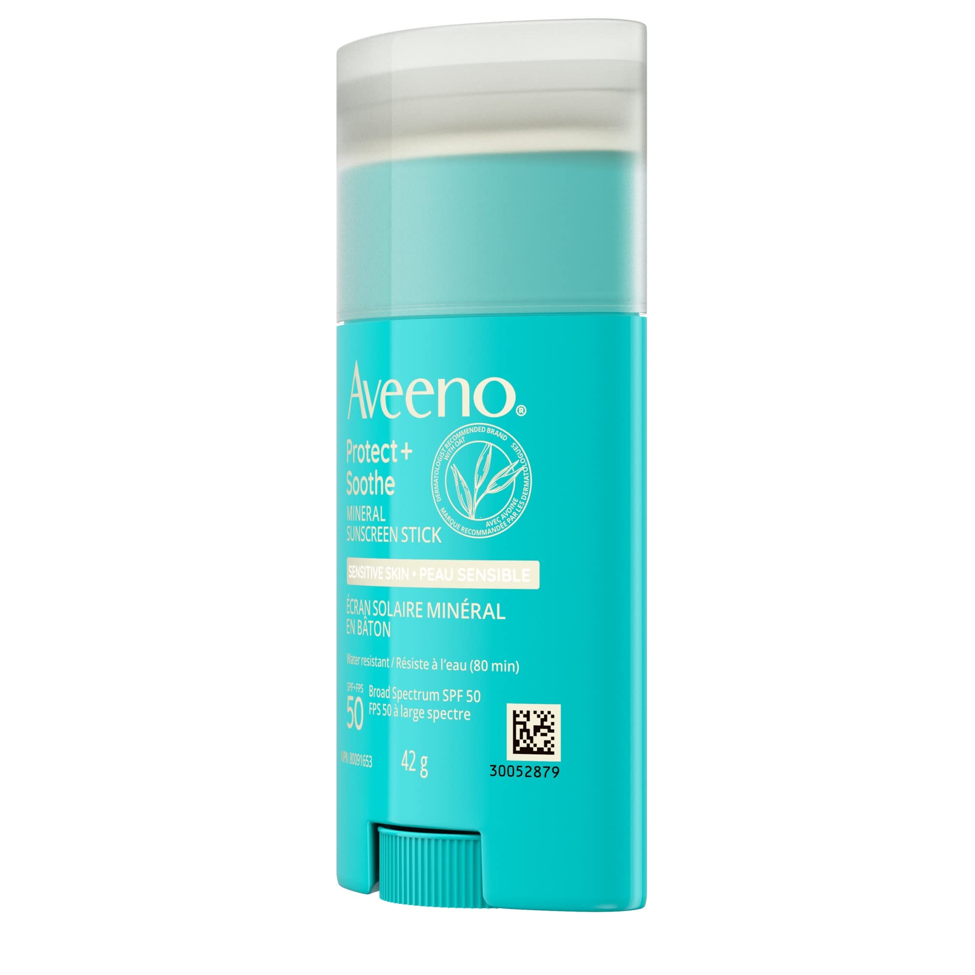 Aveeno Protect + Soothe Mineral Sunscreen Stick SPF 50+ - Sensitive Skin, Quick Drying and Water-Resistant, Sun Protection - Pure Oats & Zinc Oxide, Paraben Free, Broad Spectrum UVA/UVB - 42 Gram