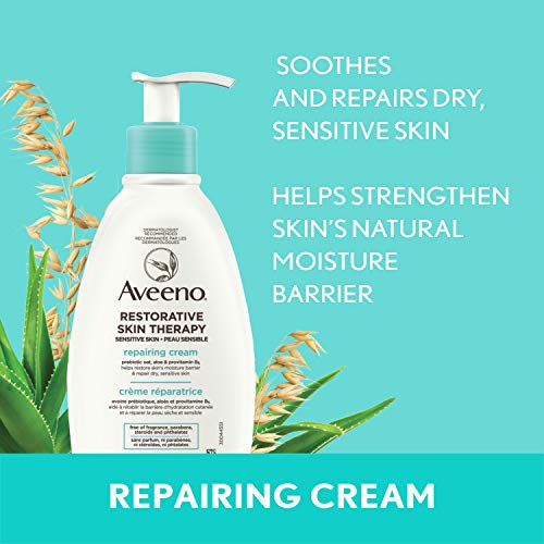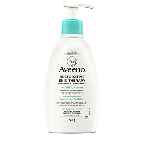 Aveeno Restorative Skin Therapy Repairing Cream, Vitamin B5, Aloe, Prebiotic Oat, Dry Skin & Sensitive Skin Lotion, 340g