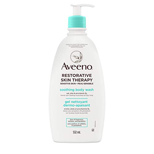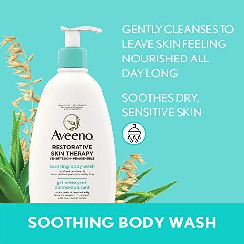 Aveeno Restorative Skin Therapy Soothing Body Wash - Vitamin B5, Aloe, Oat - Dry Skin Cleanser - Fragrance Free, 532mL