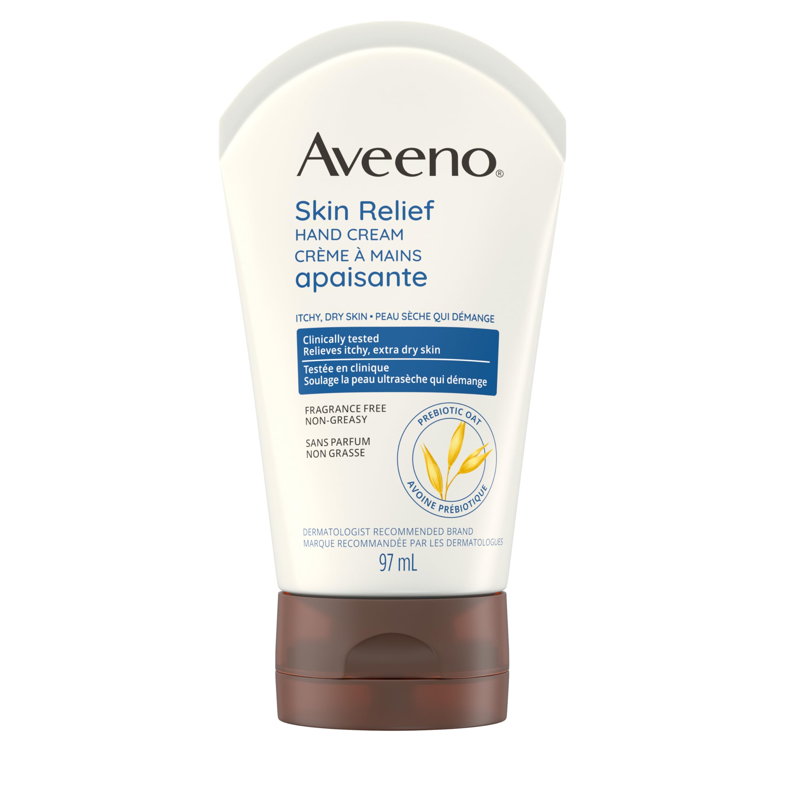 Aveeno Skin Relief Hand Cream, Dry & Itchy Skin, Prebiotic Oat Moisturizer, Fragrance Free, 97-ml
