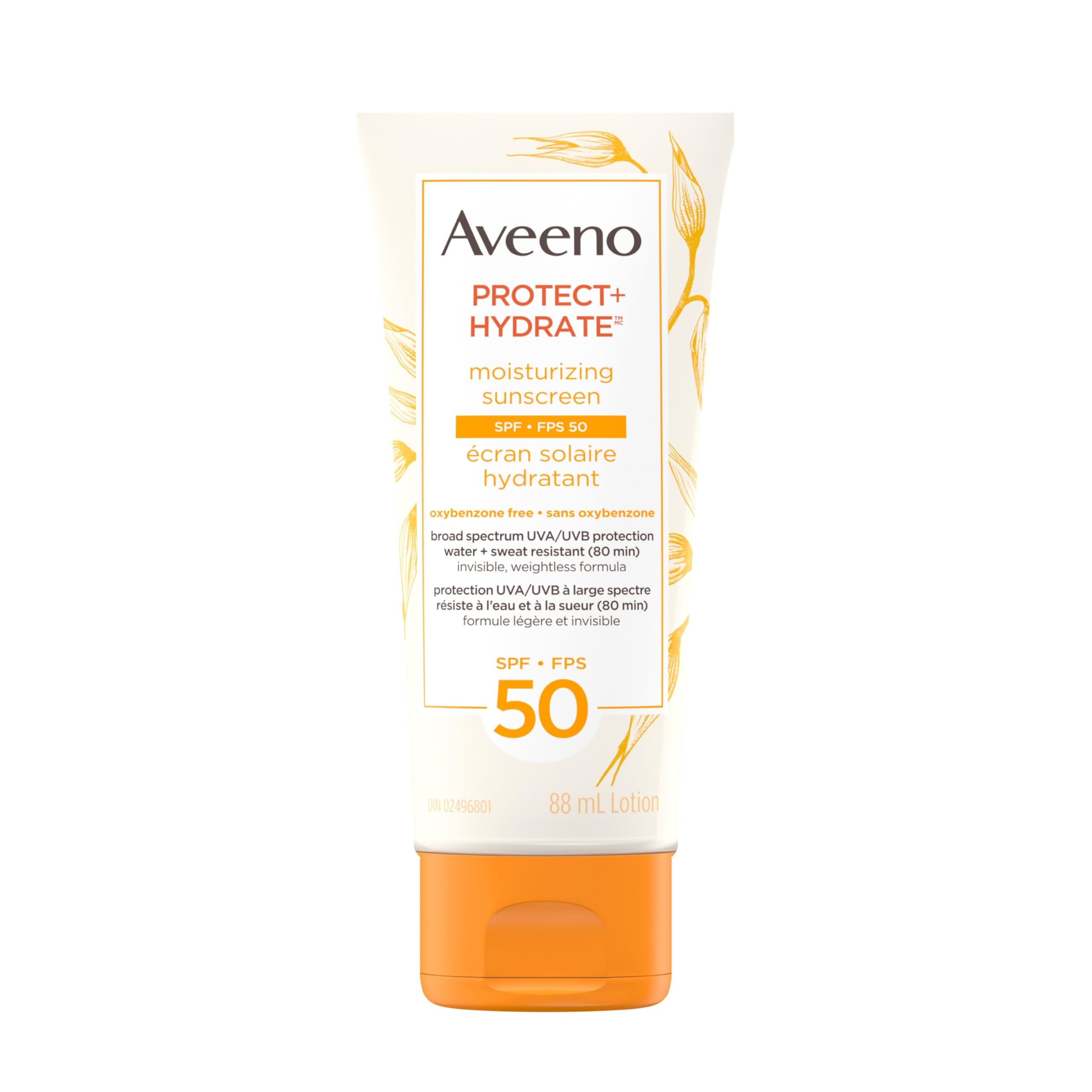 Aveeno Protect & Hydrate Face Sunscreen Lotion SPF 50 - Broad Spectrum UVA/UVB Protection with Oat Formula - Water Resistant, Non-Comedogenic Moisturizing Cream for Sensitive Skin, 88 mL