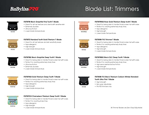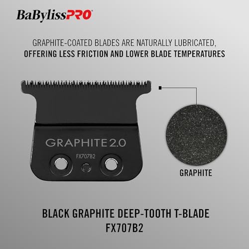 BaBylissPRO Barberology Deep Tooth Replacement Trimmer Blade, Black Graphite T Blade (FX707B2)