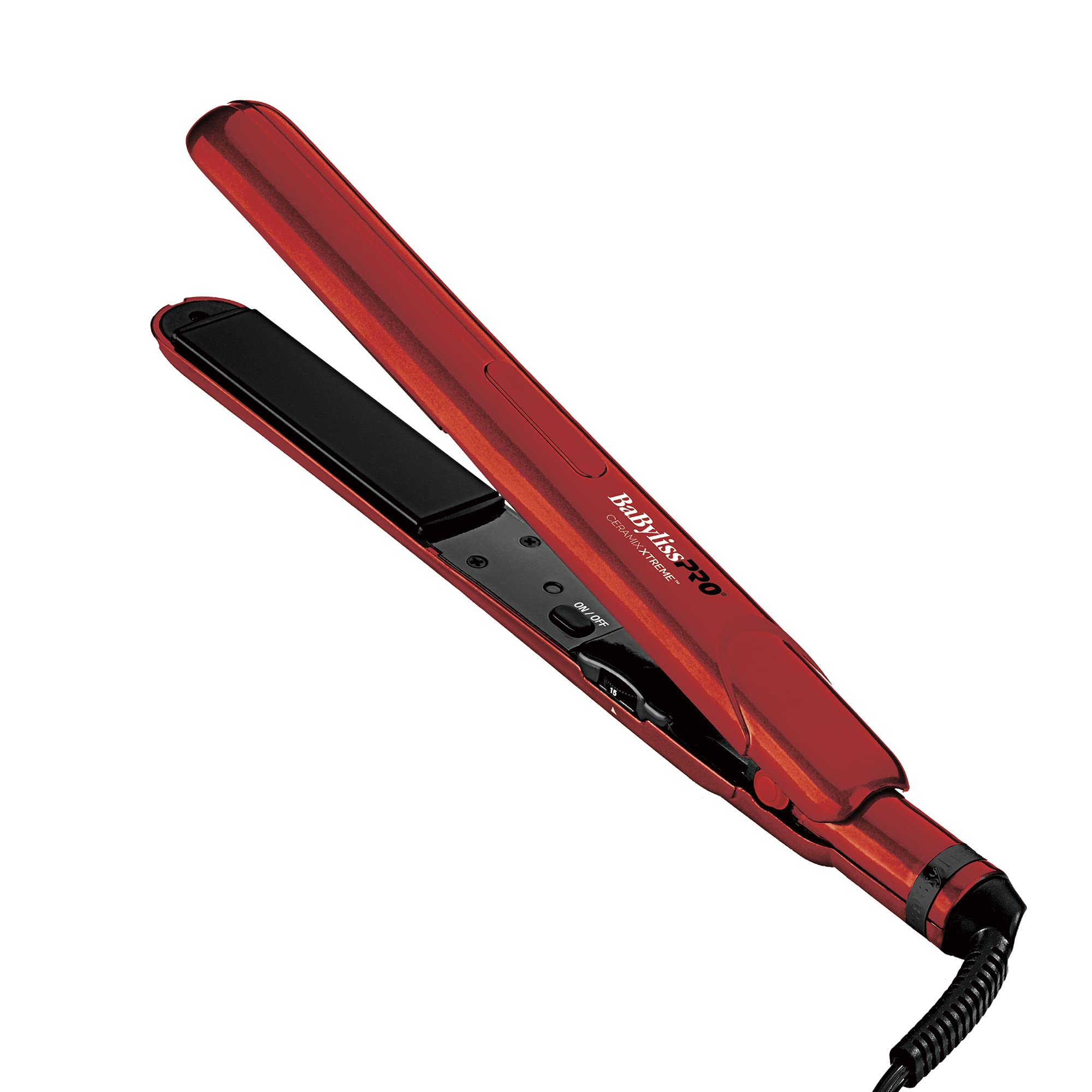 BaBylissPRO Ceramix Xtreme Hair Straightener, Universal Voltage Flat Iron with Floating Plates, Red