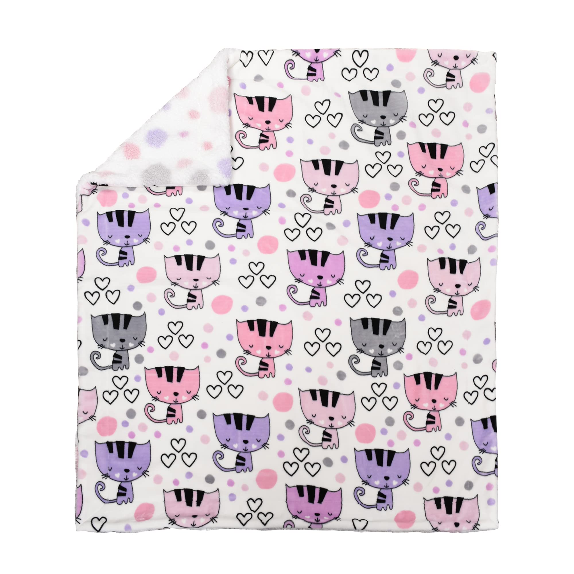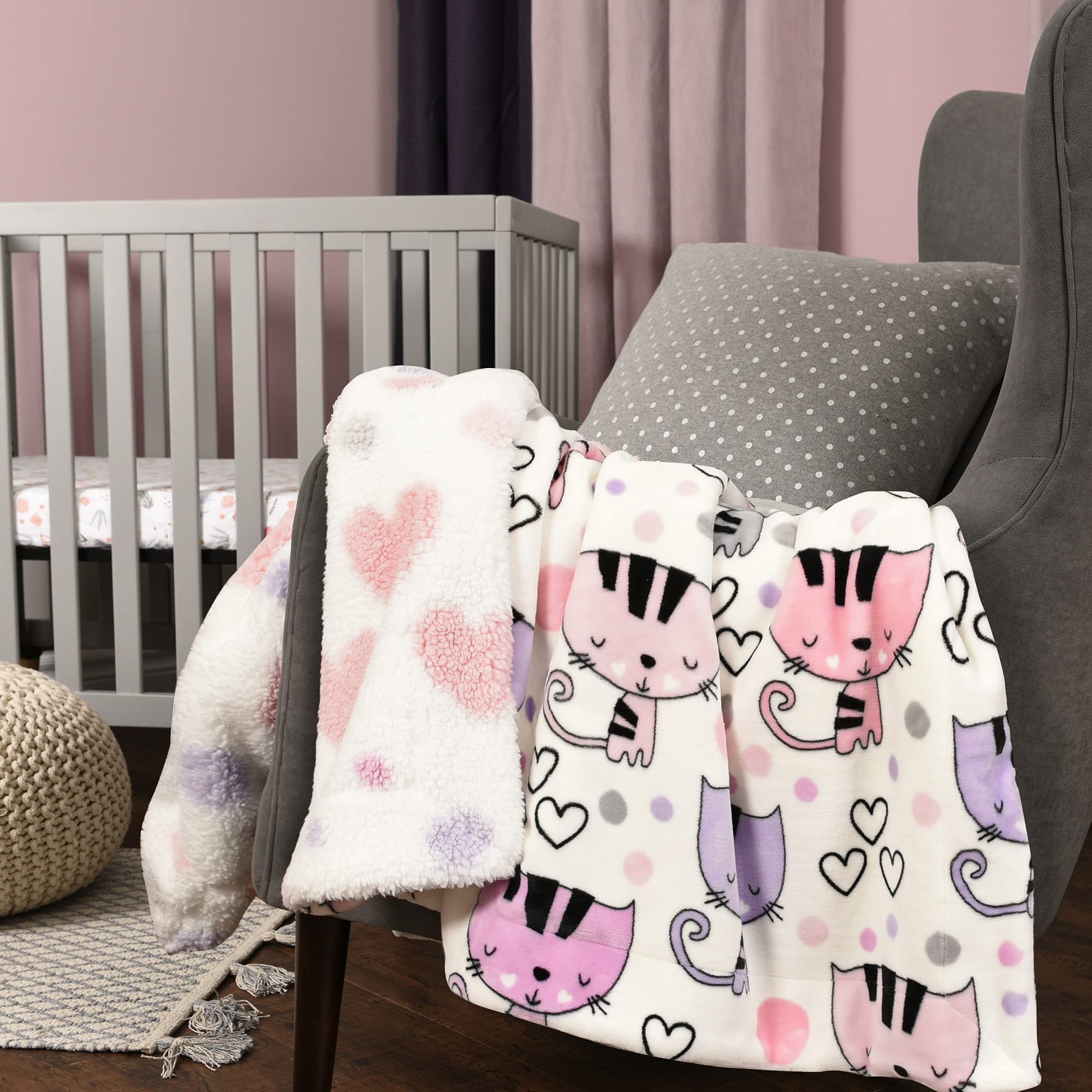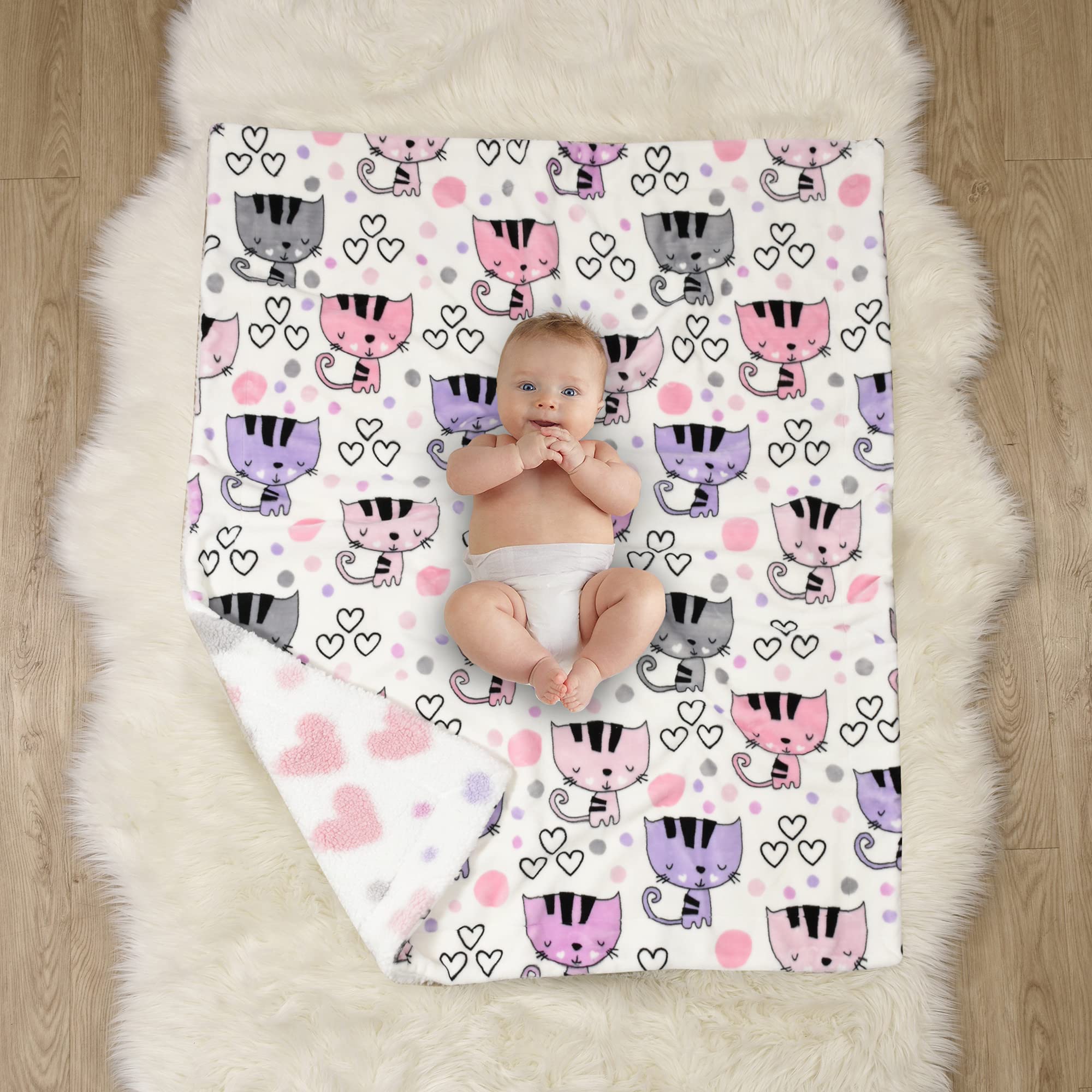 Baby's First by Nemcor Ultimate Sherpa Baby Blanket for Infant, Newborn, Super Soft and Cozy Reversible Blanket for Toddlers, Baby Boy or Girl, Kittens, Pink