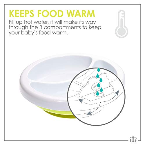 bblüv - Platö - Warming Plate - 3 Compartment, Non-Toxic, BPA Free with Suction Base for Baby Toddler (Lime)