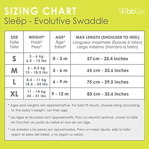 bblüv - Sleëp - Transition Zipper Swaddle Sack With Removable Sleeves -Arms Up Swaddle For Newborns And Infants Large