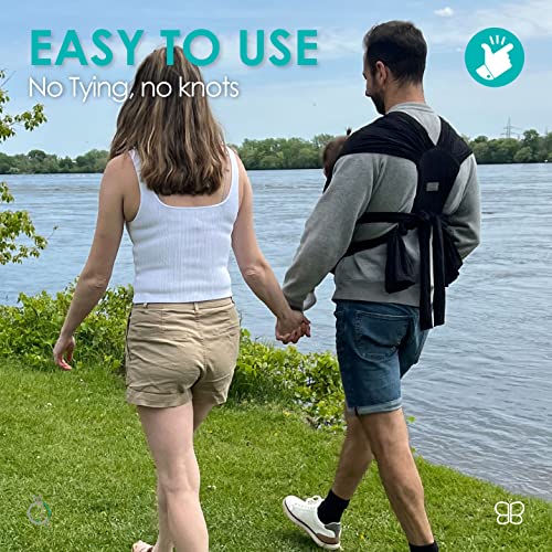 bblüv Snüg - Ready-To-Wear Baby Wrap Carrier - 4 Carrying Positions, Newborn To 18 Months, Breastfeed In On The Go, No Tying, No Knots, Adjustable (Black, Size 2)