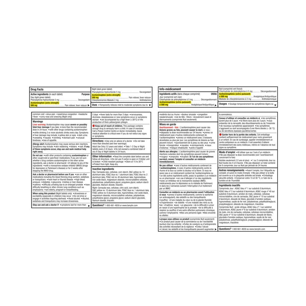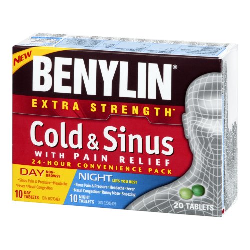 BENYLIN Extra Strength Cold and Sinus Caplets, Relieves Cold and Sinus symptoms, Daytime and Nighttime, Convenience Pack, 20ct