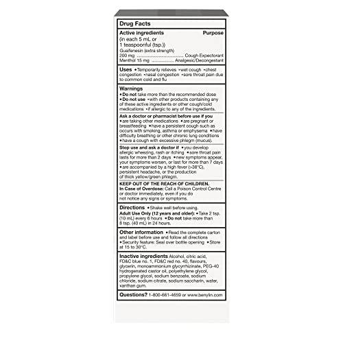 BENYLIN Extra Strength Sore Throat and Cough Syrup, Relieves Sore Throat and Wet Cough, 250 mL