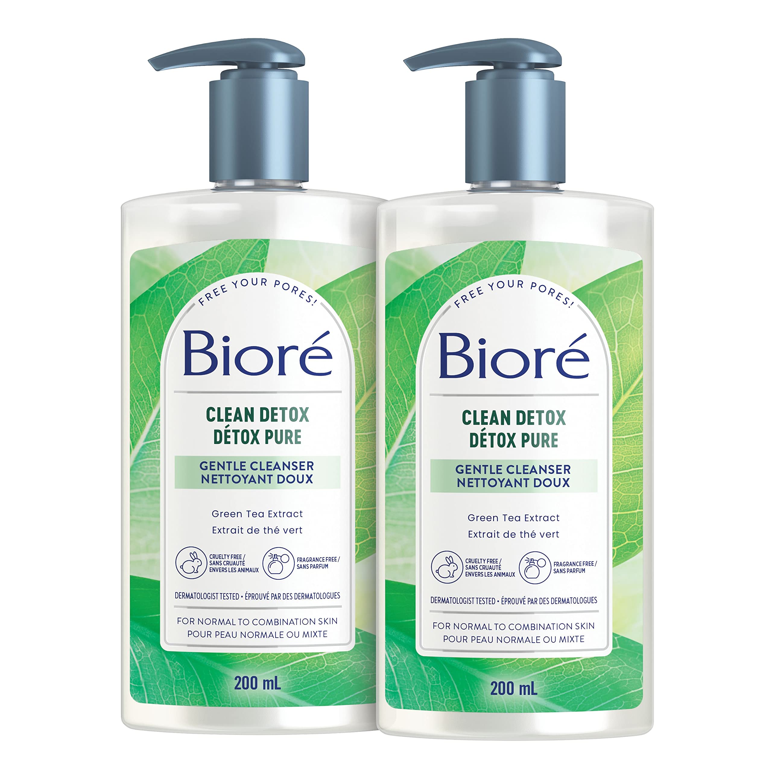 Bioré Clean Detox Gentle Face Cleanser, for Normal to Combination Skin | Dermatologist Tested, Fragrance Free, Cruelty Free (Pack of 2)