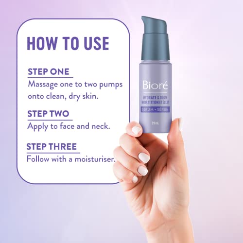 Biore Hydrate & Glow Serum, Face Serum for Dry, Sensitive Skin, infused with Prebiotics, Hyaluronic Acid and Coconut Water |Dermatologist Tested, Cruelty Free and Fragrance Free (29mL), White