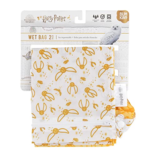Bumkins Waterproof Wet Bag, Washable, Reusable for Travel, Beach, Pool, Stroller, Diapers, Dirty Gym Clothes, Wet Swimsuits, Toiletries - Harry Potter Quidditch (2-Pack)