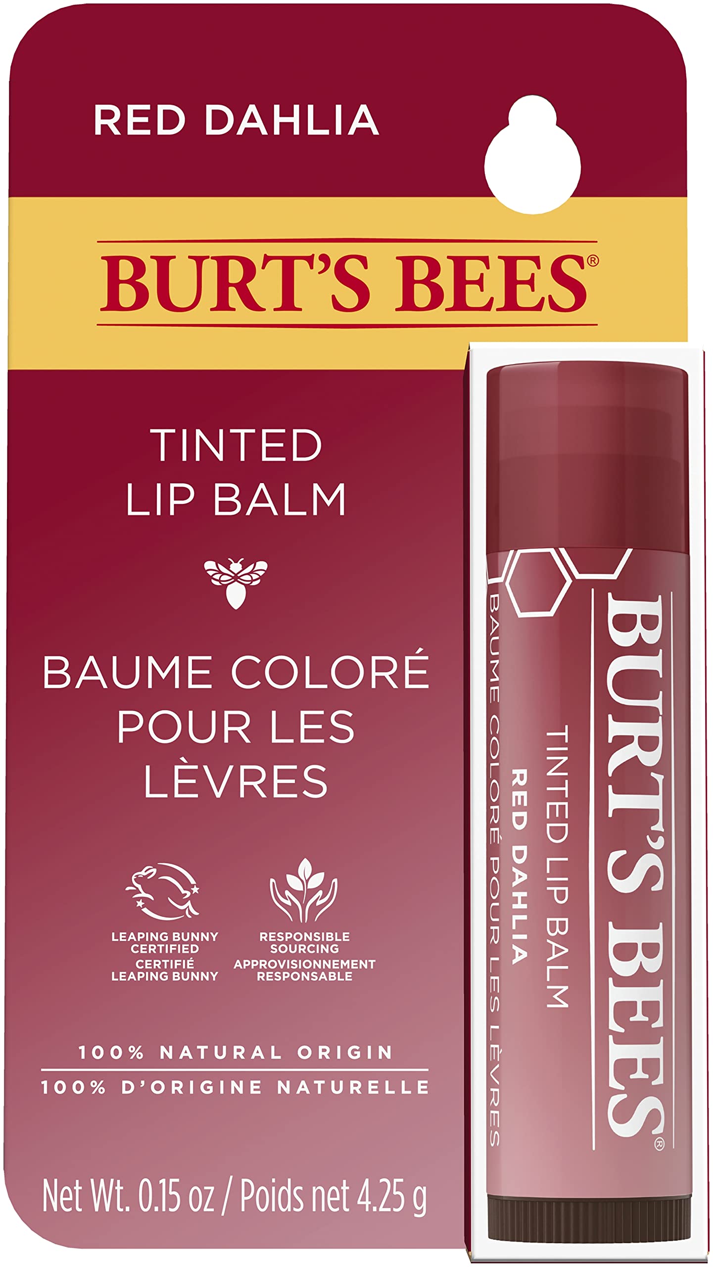 Burt's Bees Tinted Lip Balm, Hydrates and Softens Dry Lips with Long-Lasting Moisture for up to 8 Hours, Pack of 1 - Red Dahlia