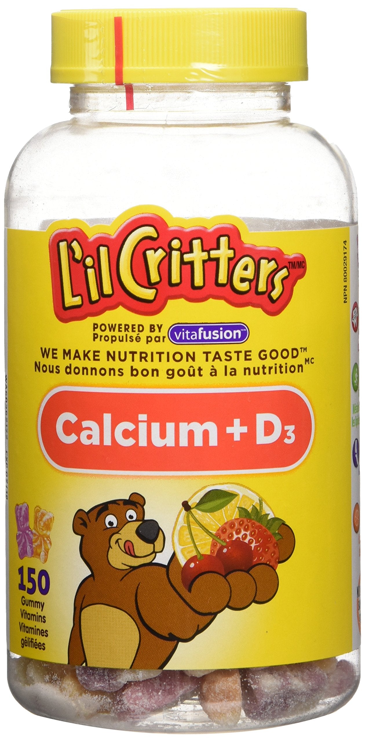 L'il Critters Calcium + D Kids Vitamin Gummies, for healthy development, Naturally Sourced Colors & 3 Delicious Flavors, 150 Count (2.5 Month Supply)