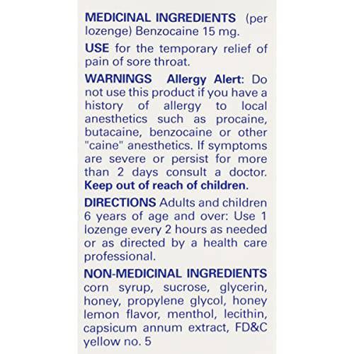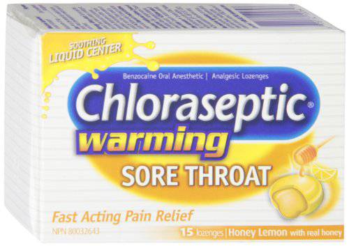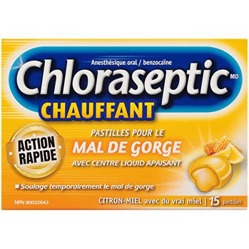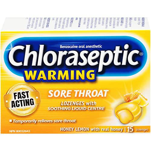 Chloraseptic Fast Acting Sore Throat Lozenges with Soothing Liquid Centre, Provides Warming Relief, Honey Lemon Flavour, 15 Lozenges
