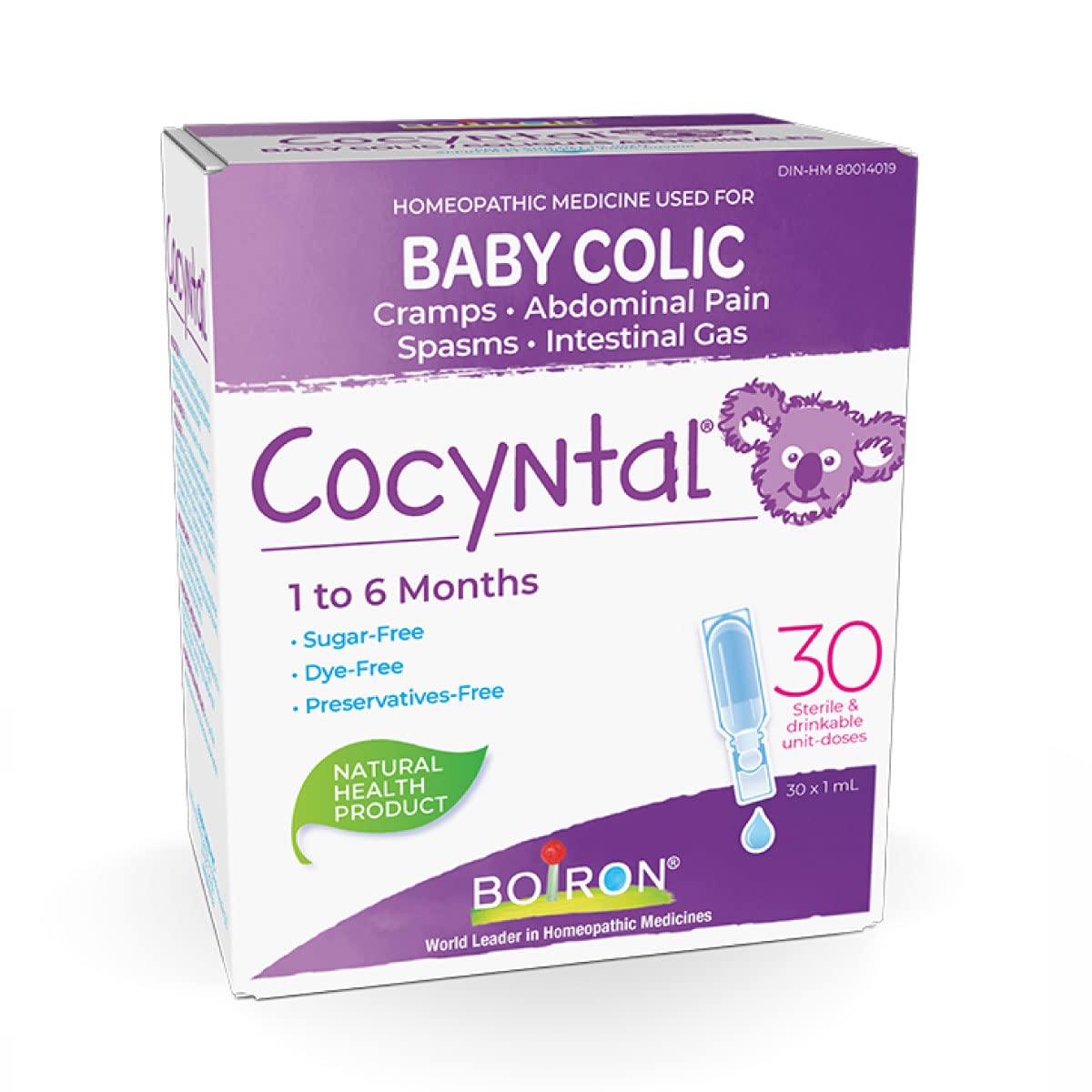 Boiron Cocyntal used for the relief of baby colic: abdominal pain, cramps, spasms and intestinal gas. 30 unit-doses