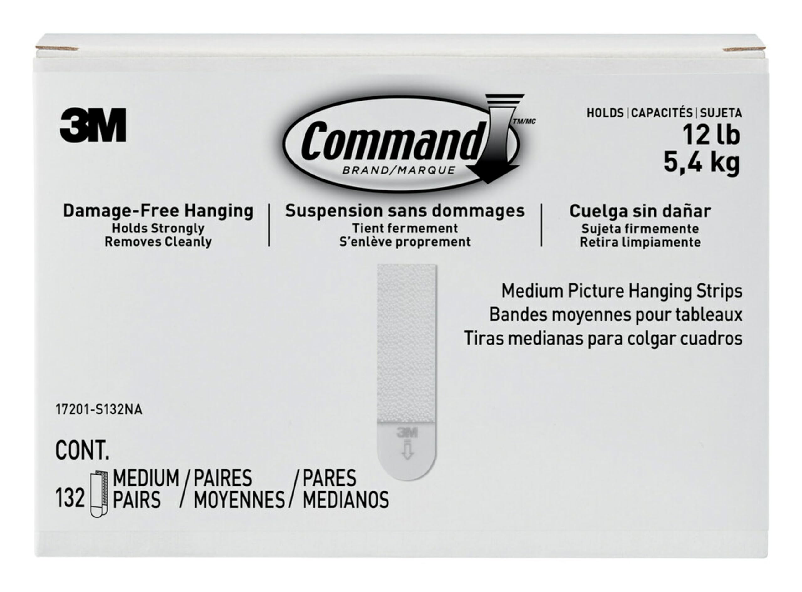 Command Medium Picture Hanging Strips, Damage Free Hanging Picture Hangers, No Tools Wall Hanging Strips for Living Spaces, 132 White Adhesive Strip Pairs(264 Command Strips)