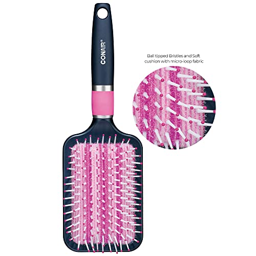 Conair® Quick Smooth De-Poof Paddle Brush for Women, Men All Hair Types-Lengths and Everyday Brushing (55814WC-4CT)