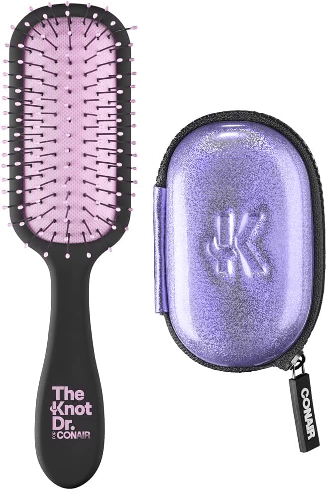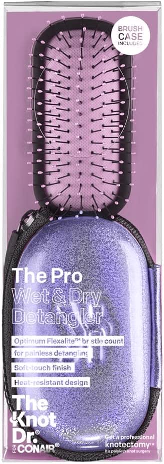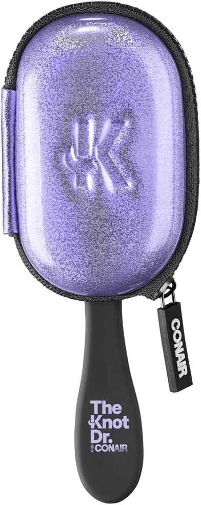 Conair The Knot Dr. Pro Mini Detangling Brush With Flexalite Bristles And Metallic Case For Women, Men All Hair Types-Lengths Wet To Dry (64434C), Purple
