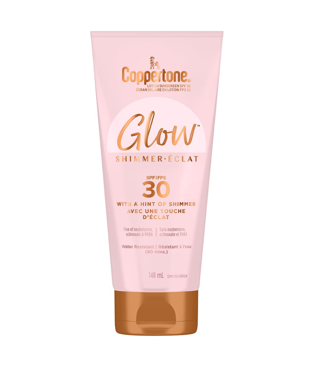Coppertone Glow Sunscreen Lotion SPF 30 With a Hint of Shimmer, Lightweight, Water Resistant Body Sunscreen Broad Spectrum SPF 30 UVA/UVB Protection, Reef-Friendly, Oxybenzone Free, 148mL