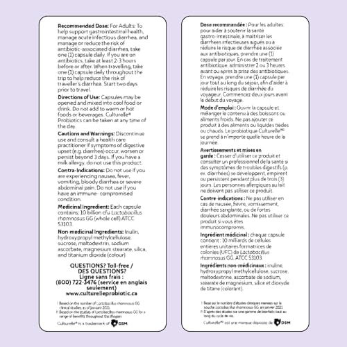 Culturelle Daily Digestive Health Daily Probiotic for Men and Women | With 100% Naturally Sourced Lactobacillus GG Strain †††††† | Pharmacist Recommended ††††† | Gluten Free and Vegan | 30 Count Capsules