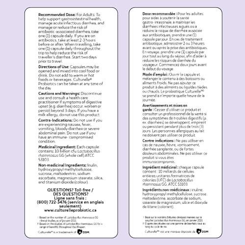 Culturelle Daily Digestive Health Daily Probiotic for Men and Women, With 100% Naturally Sourced Lactobacillus GG Strain, Pharmacist Recommended Gluten Free and Vegan, 50 Count Capsules (Pack of 1)