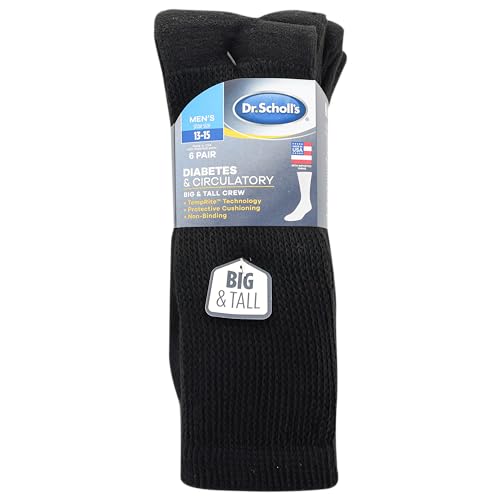 Dr. Scholl's Unisex Men's and Women's Diabetes & Circulator Socks - 1 Pair Pack - Unisex Non-Binding Moisture Management, Black, 13-15