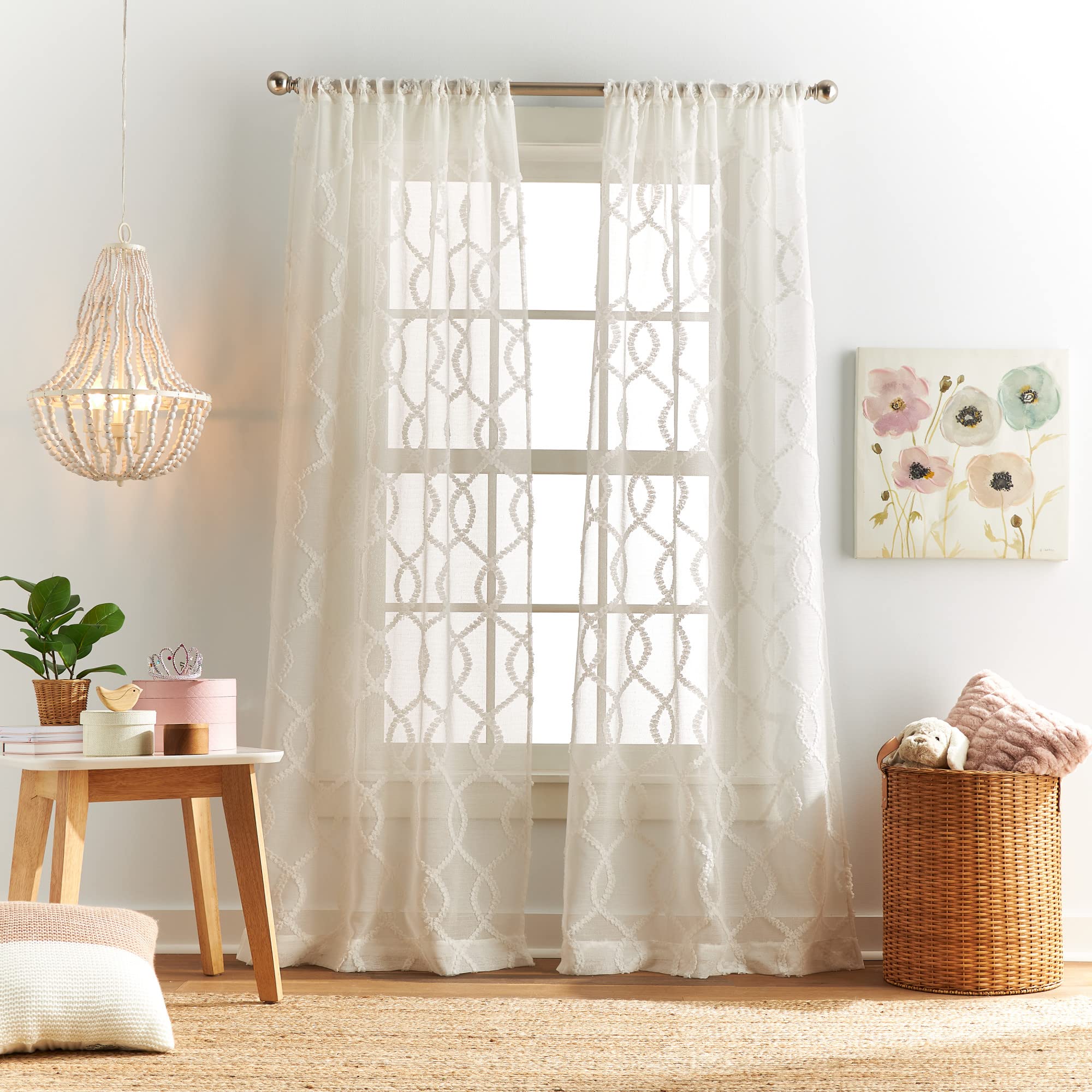 Dream Factory Sheer Curtains for Kids Room Girls Bedroom Décor for Nursery Rod Pocket Window Treatment 2 Piece Set, 84" Panel Pair, White Audrey