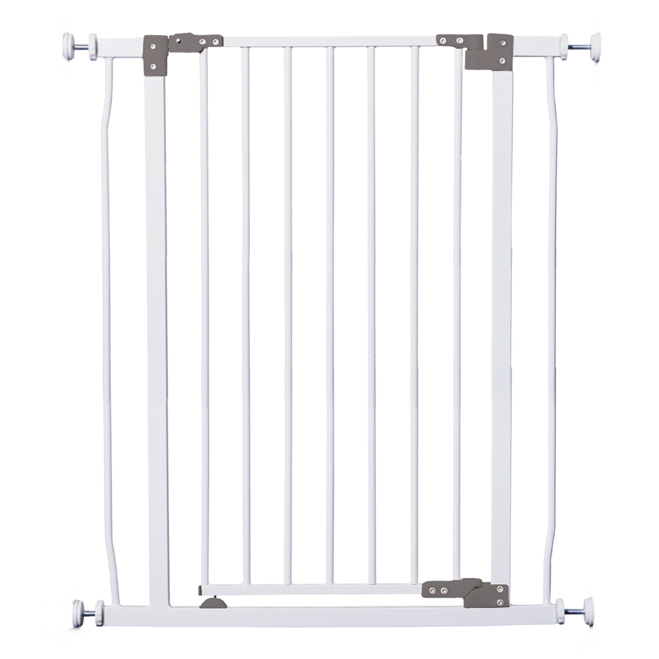 Dreambaby liberty extra tall security gate is a fantastic addition to every childproof home. They are suitable for doorways and hallways sized 30" to 32.25" (75-84 cm) and is 36.5" Tall . With optional extensions, sold separately, they can fit openings up to 53.25". For the quiet times when your child is asleep, or while carrying in the shopping with not a spare finger left to be able to open a gate, it has the absolutely fabulous stay-open feature. Just position the door in the stay-open position and it will stay wide open till you choose to close it. The door also has an auto close feature so that it will swing close and lock automatically. These gates are pressure-mounted, which means fuss free installation with no screws or drilling required-perfect for temporary or rental properties.