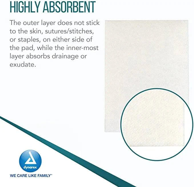 Dynarex Non-Adherent Pads-Sterile, Individually Packaged, Non-Stick Wound and Burn Care, Soft & Highly Absorbent, 3” x 4”, 1 Box of 100 Non-Adherent Pads-Sterile
