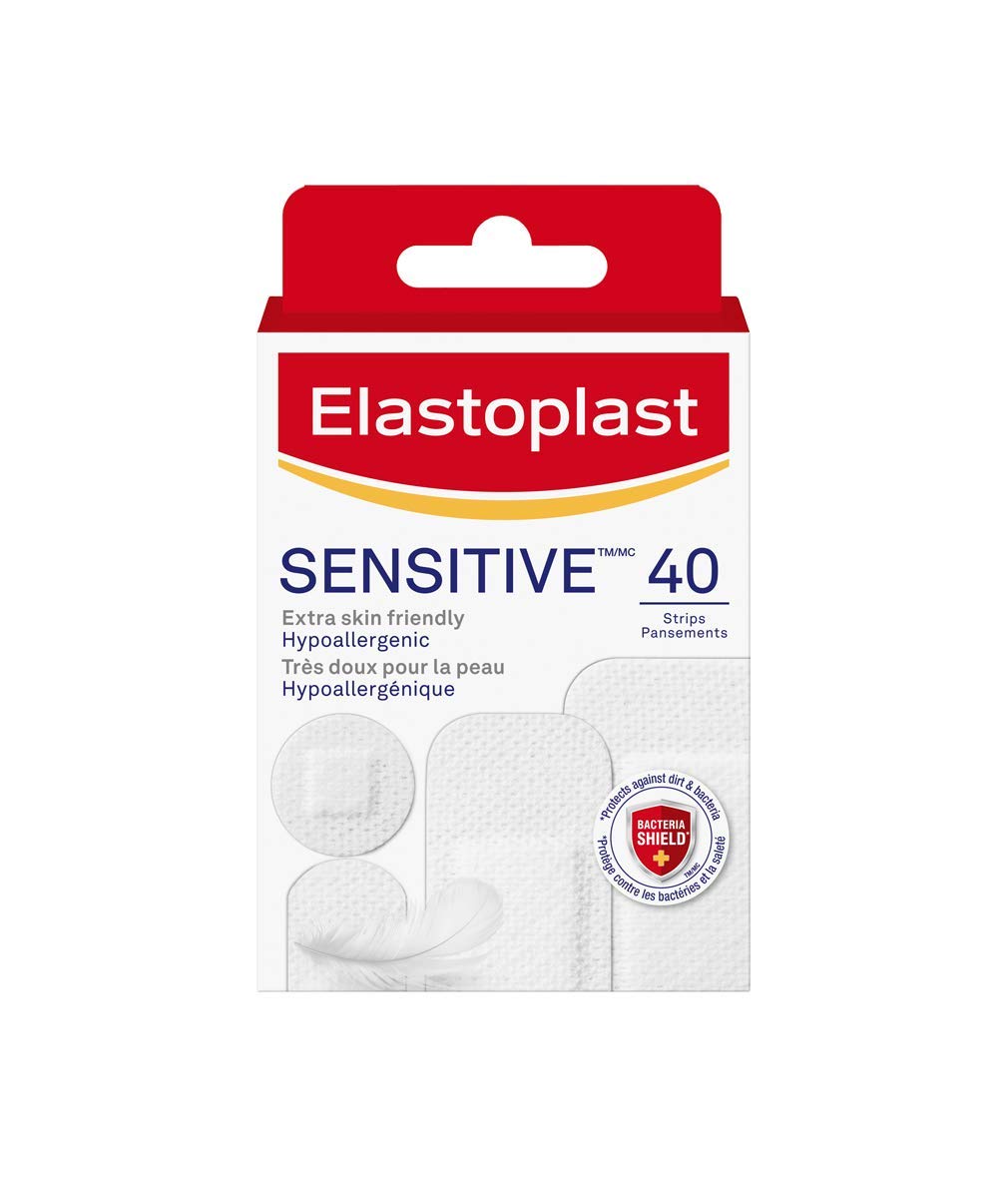 ELASTOPLAST Sensitive Adhesive Bandages for Wound Care and First Aid Kit, Extra Skin-Friendly Hypoallergenic Bandages, Strong Adhesion, Bacteria Shield, First Aid Supplies, 40 Assorted Sizes, White