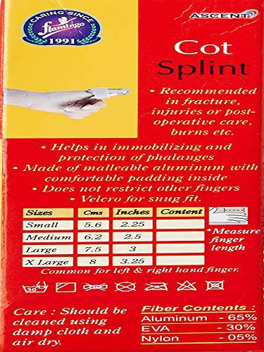 Flamingo Cot Splint Straightening Finger Corrector Brace for Fracture, Muscle - Aluminium with Foam Padding for Immobilises, Burns and Protects Phalanges - Medium