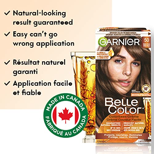 Garnier Belle Color Permanent Hair Dye, 75 Light Auburn, 100% Grey Coverage, Enriched with Argan Oil and Wheat Germ Oils - 1 Application, Packaging may vary