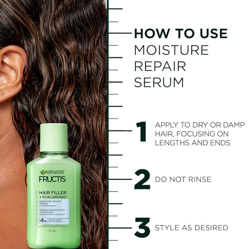 Garnier Fructis Hair Filler + Hyaluronic Acid Moisture Repair Sulfate-Free Serum, for Curly and Wavy Hair, up to 15X More Moisture & 100 Hours of Frizz Control, 111ml
