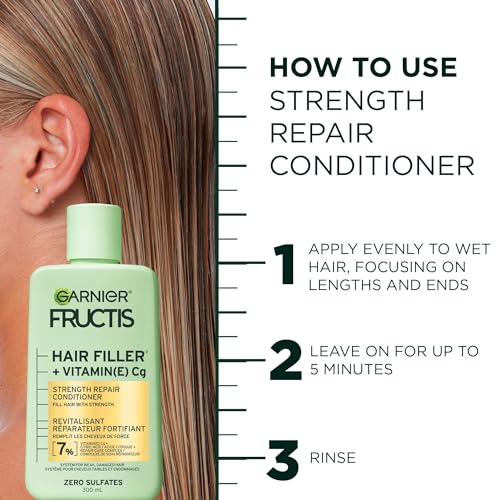 Garnier Fructis Hair Filler + Vitamin C Strength Repair Sulfate-Free Conditioner, for Weak Damaged Hair, up to 4X Less Breakage & 79% More Strength, 300ml