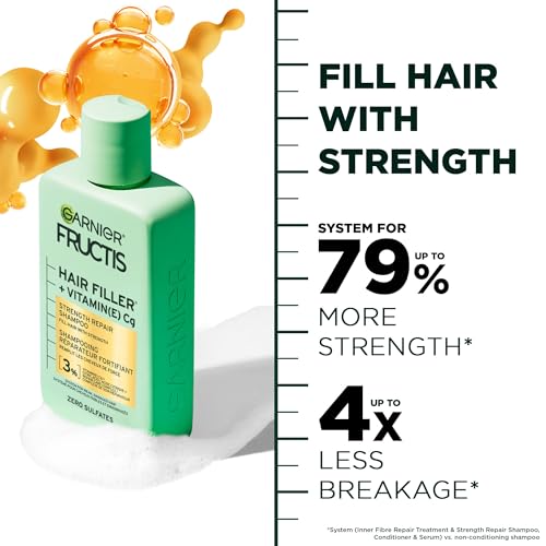 Garnier Fructis Hair Filler + Vitamin C Strength Repair Sulfate-Free Shampoo, for Weak Damaged Hair, up to 4X Less Breakage & 79% More Strength, 300ml