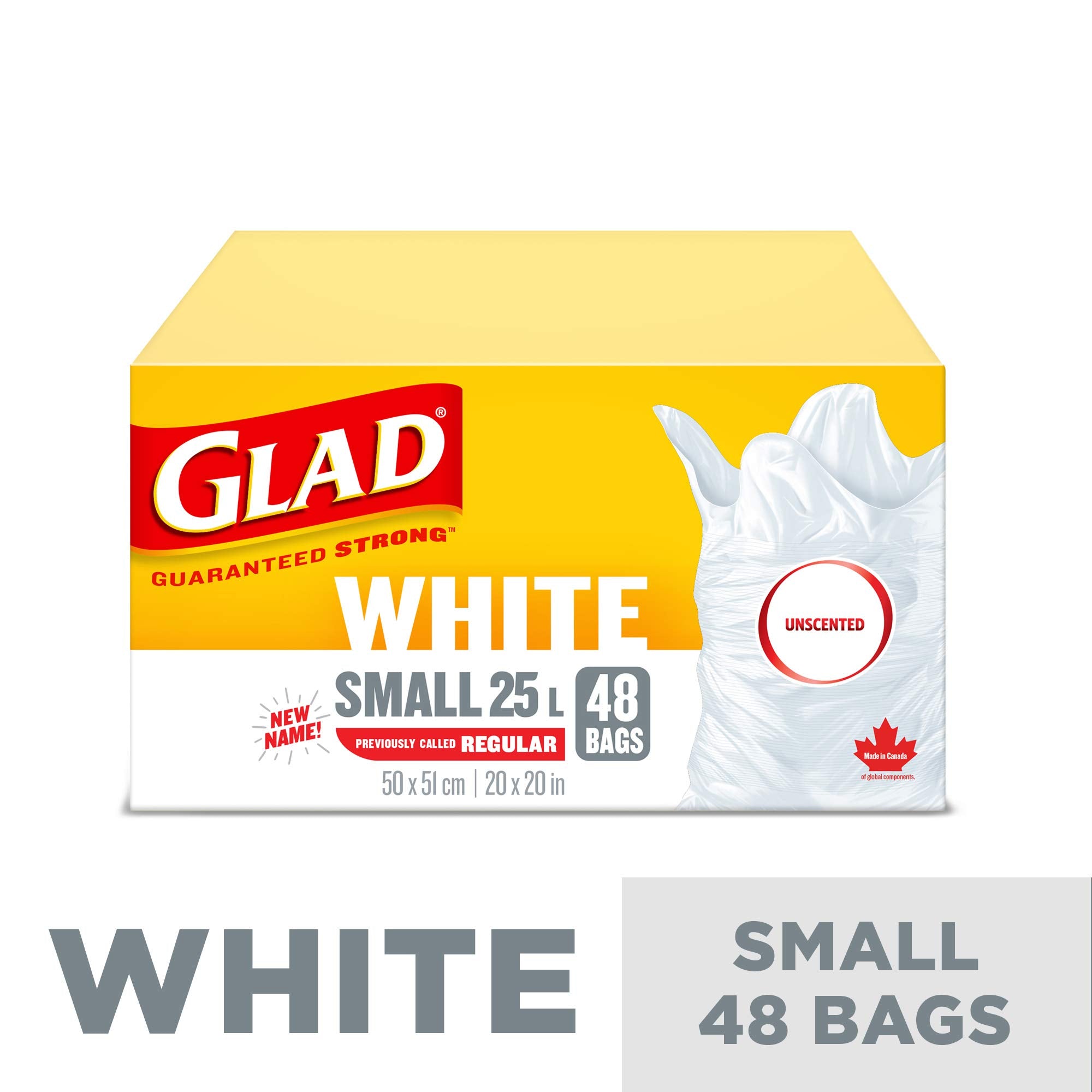Glad White Garbage Bags - Small 25 Litres - Unscented, 48 Trash Bags, Made in Canada of Global Components