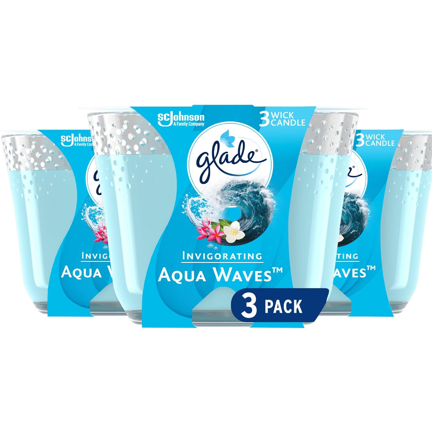 Glade Scented Candle, Aqua Waves, Air Freshener Infused with Essential Oils for Home Fragrance, 3-Wick Candle, 3 Count