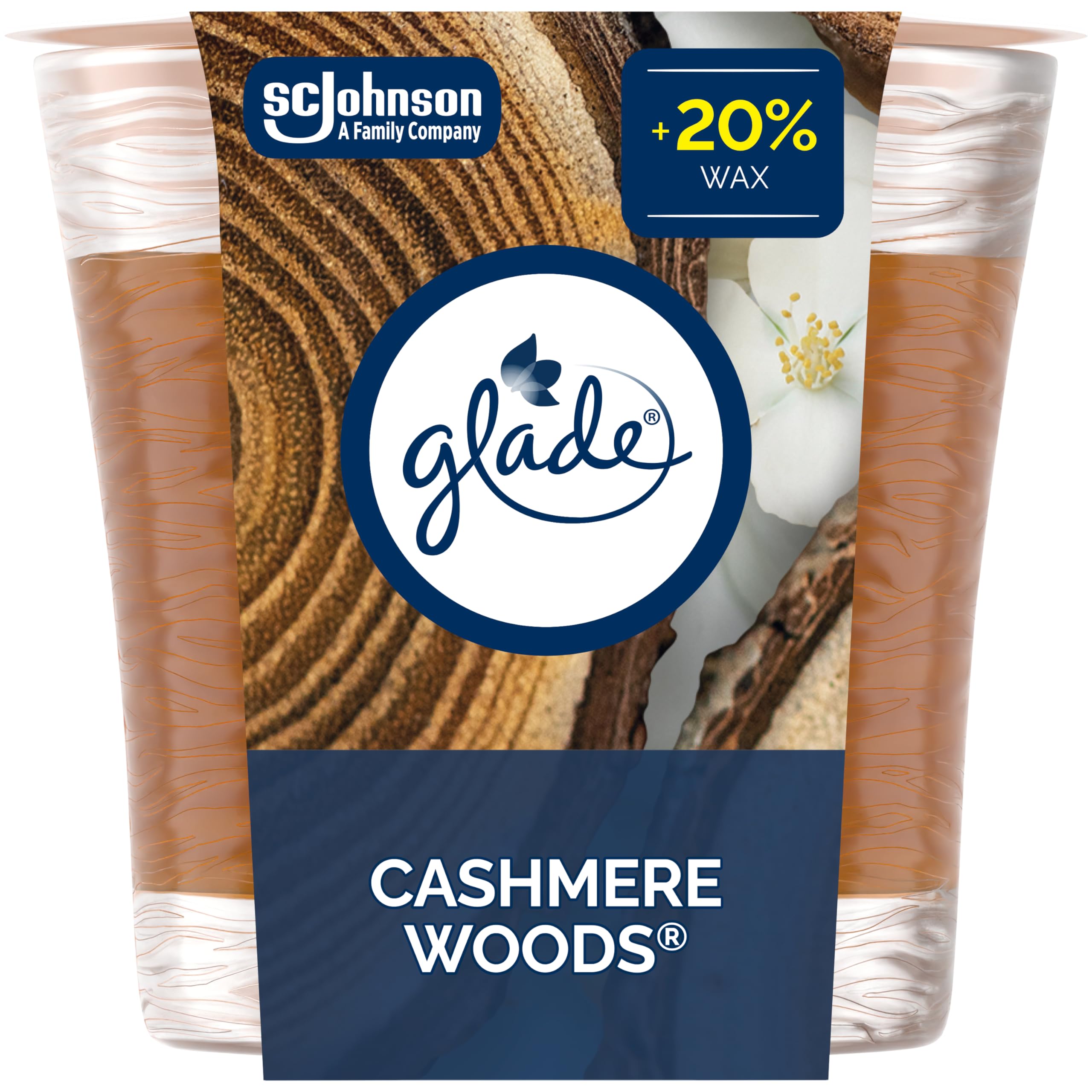 Glade Scented Candle, Cashmere Woods, 1-Wick Candle, Air Freshener Infused with Essential Oils for Home Fragrance, 1 Count (Packaging May Vary)