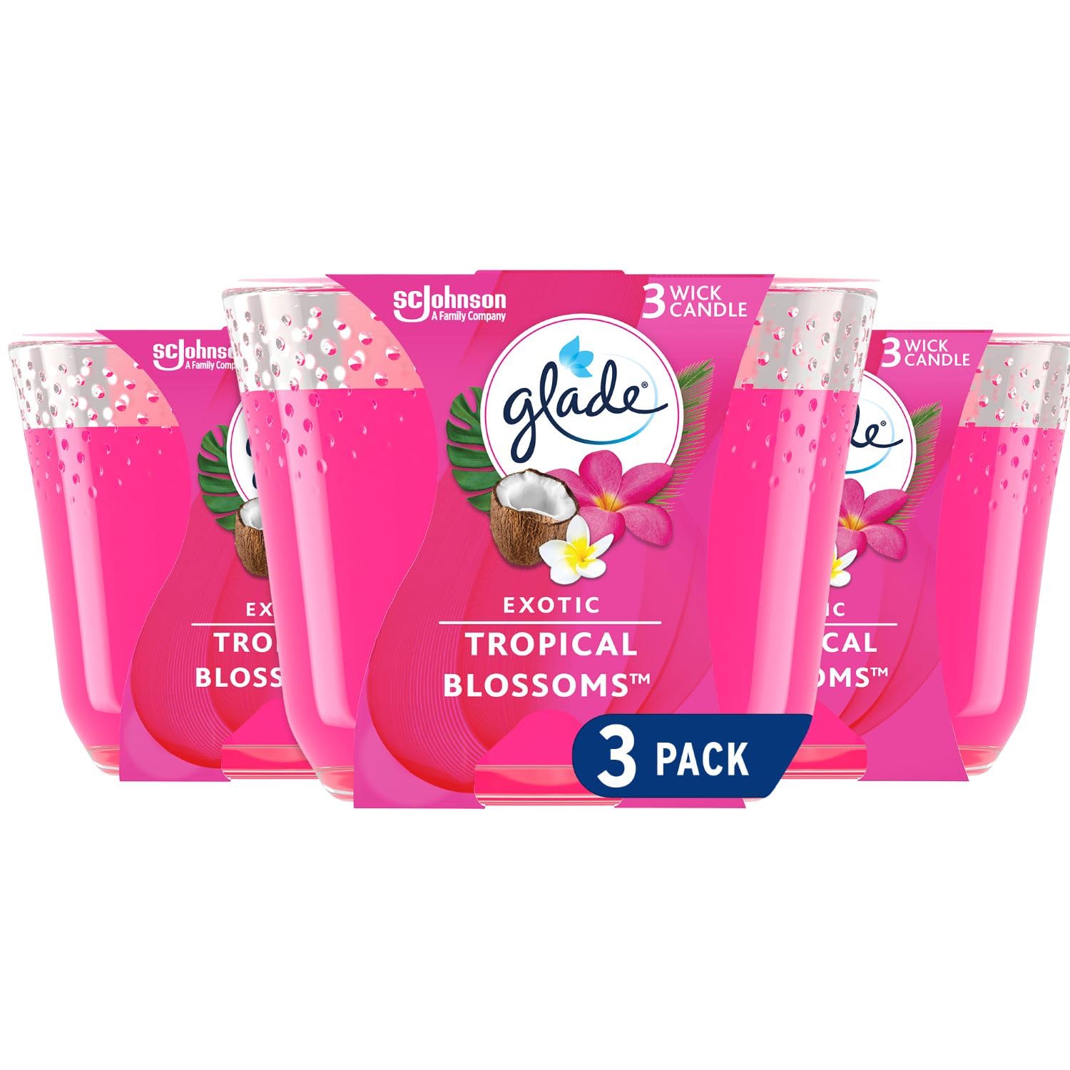 Glade Scented Candle, Exotic Tropical Blossoms, Air Freshener Infused with Essential Oils for Home Fragrance, 3-Wick Candle, 3 Count