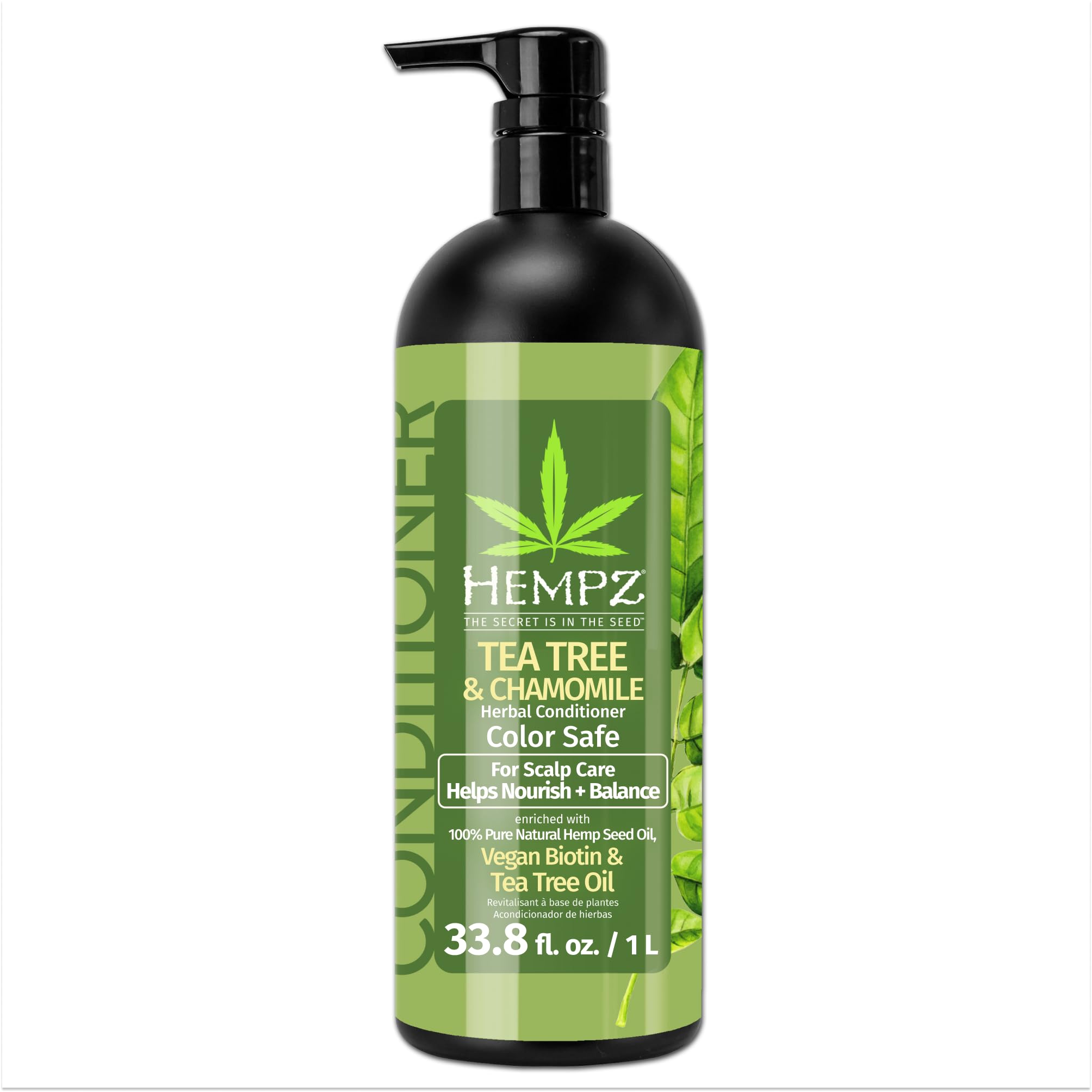 HEMPZ Tea Tree & Chamomile Herbal Hair Conditioner - Gentle Cleansing Herbal Shampoo Enriched with Chamomile, Lavender, Aloe Extracts - 33.8 Fl OZ