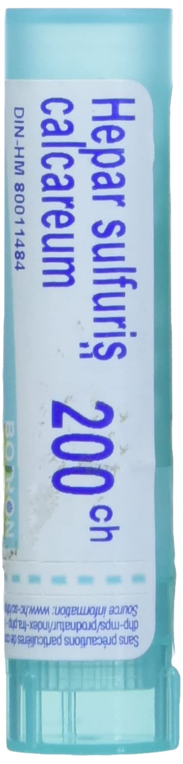 Boiron Hepar sulfuris calcareum 200ch,Homeopathic medicine. Each tube contains 4 g (approximately 80 pellets)