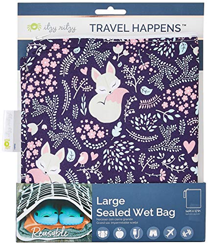 Itzy Ritzy Sealed Wet Bag with Adjustable Handle - Washable and Reusable Wet Bag with Water Resistant Lining Ideal for Swimwear, Diapers, Gym Clothes & Toiletries; Measures 11" x 14", Fox Hollow